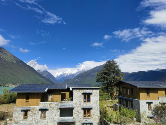 屋顶铺设光伏瓦的松赞巴松措林卡酒店