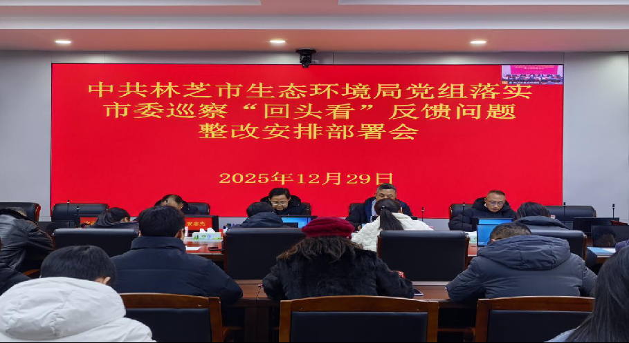 为确保市委第四巡察组反馈问题整改工作落到实处、见到实效。12月29日下午,林芝市生态环境局党组召开落实市委巡察“回头看”反馈问题整改工作安排部署会议,旨在进一步统一思想、明确任务、压实责任。市生态环境局党组书记、副局长徐继军主持会议并讲话,局在家班子成员及市局全体干部职工参加会议,县(市、区)分局干部职工线上参加会议。